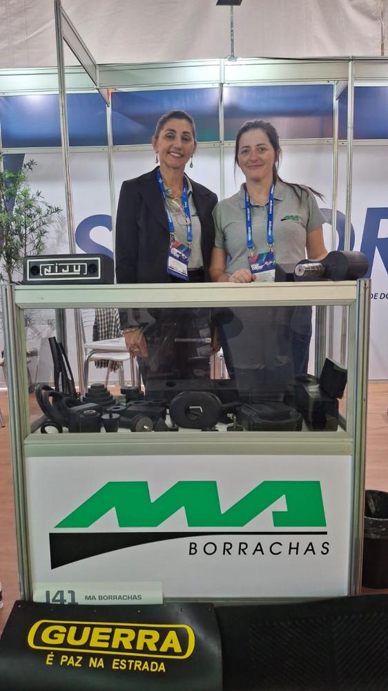 Marisa Kaspary Zanatta, da área de Desenvolvimento; juntamente com a diretora Margarete Ebling, da MA Borrachas, de Carlos Barbosa, participaram pela primeira vez do estande coletivo do SINBORSUL. “Estarmos na feira foi interessante, pois além de expositor, captando novos clientes, tivemos a oportunidade de intensificar o networking entre os colegas da borracha, e isso é muito importante especialmente para nós, que somos aqui da serra. Além da divulgação da marca, estamos agregando uma maior integração entre as empresas do mesmo segmento. Tivemos, também, a visita de dois clientes muito importantes, que são do norte do Estado, somando a outros contatos de destaque, graças ao acesso que tivemos à feira, através da entidade”, assegura Marisa.